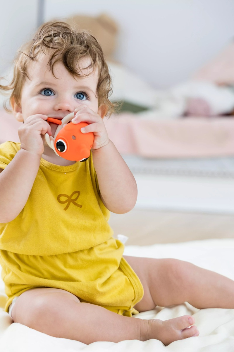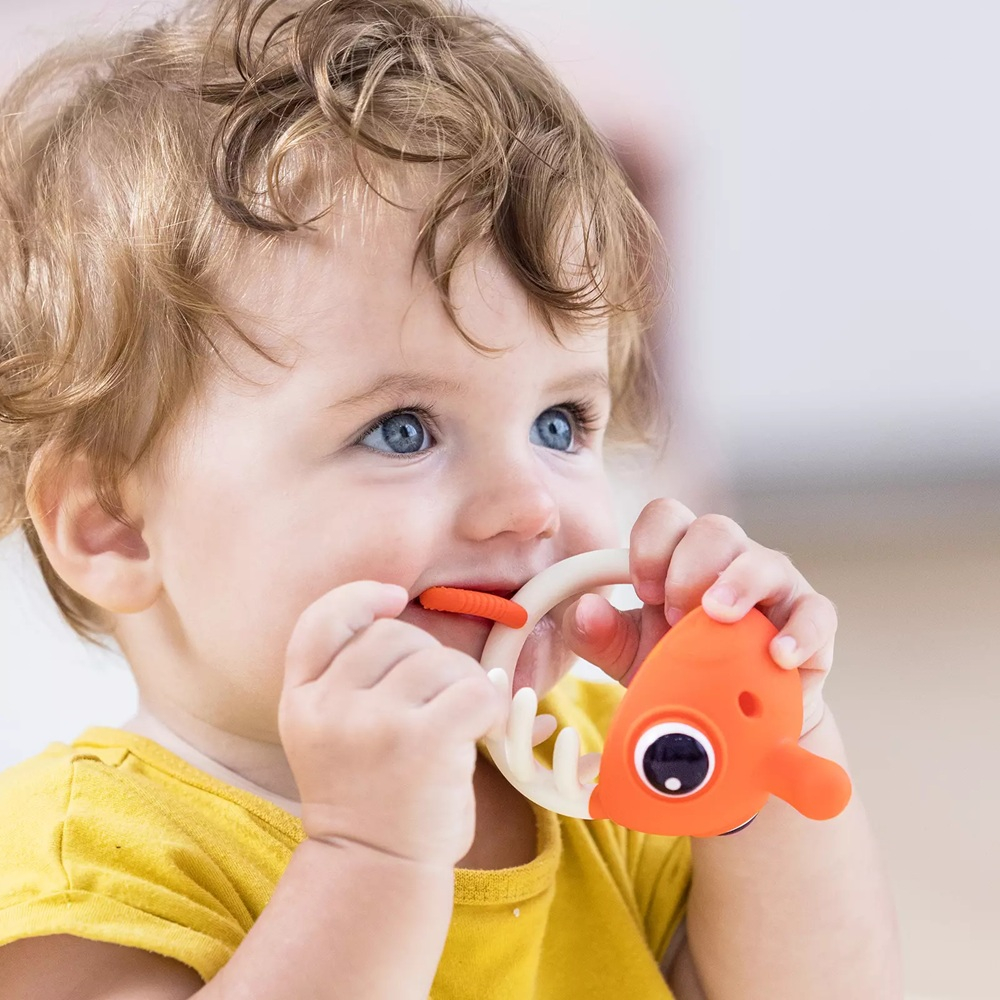 Puiul tău va iubi să se joace cu inelul gingival din silicon, Mombella – Clownfish ce ii calmeaza durerile de gingii in timpul eruptiei dintisorilor.