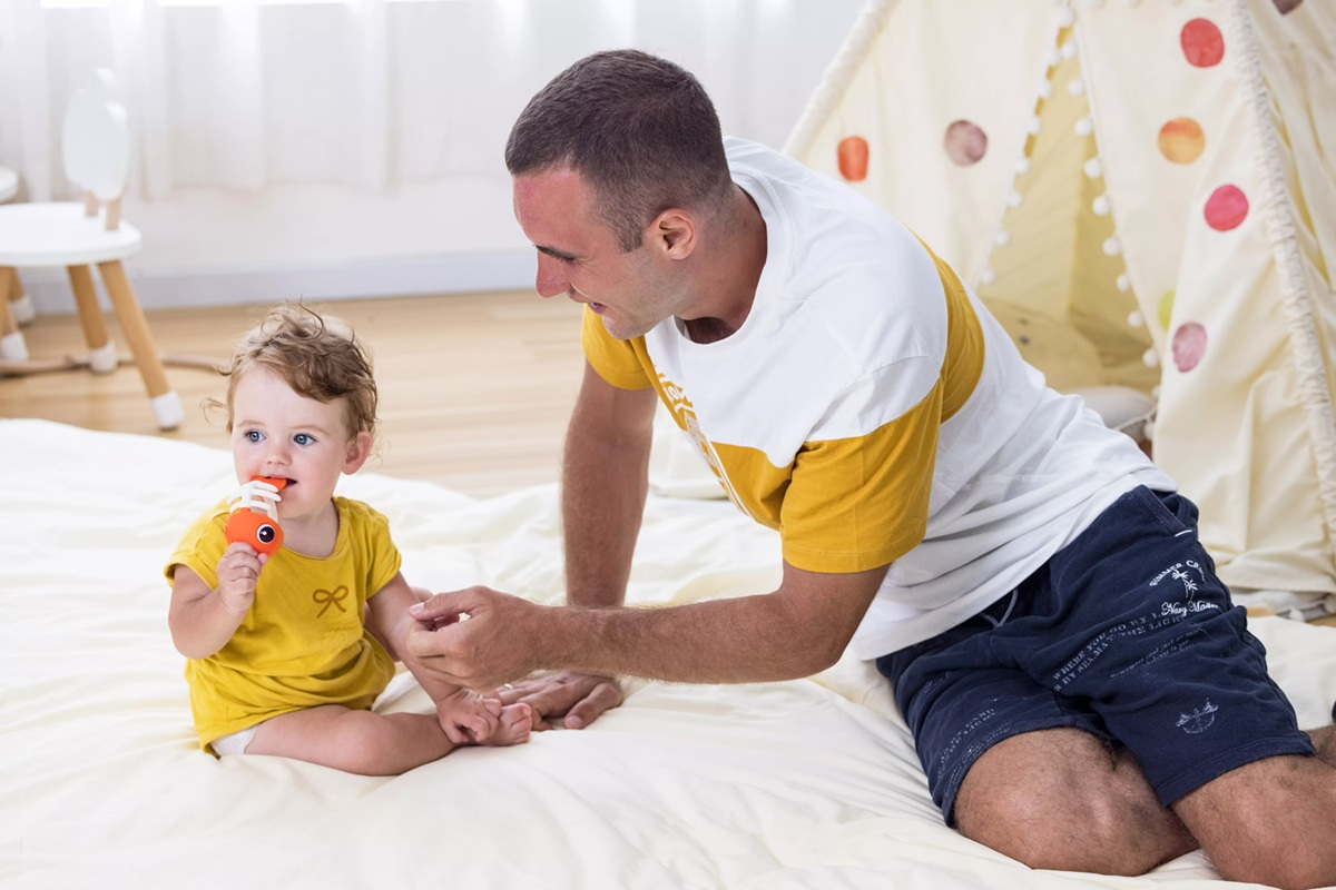 - stimuleaza dezvoltarea musculaturii gurii, ajutand alaptarea, diversificarea, vorbirea;