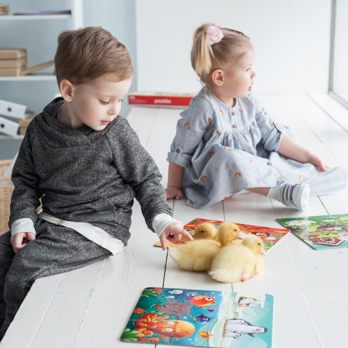 Acest set de jucarii este realizat din carton presat, un material responsabil cu mediul si cu cei mici. Piesele din acest joc il vor mobiliza pe cel mic in a le asambla, stimulandu-i creativitatea, dezvoltandu-i simtul de observatie, memoria si indemanarea.